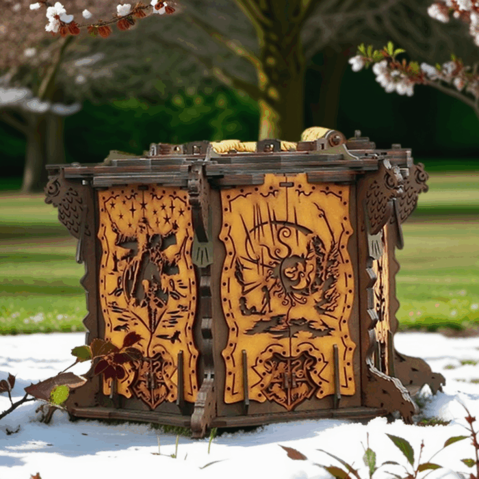 ¿Eres un verdadero fan de Harry Potter en busca de un proyecto creativo? Nuestra Caja Misteriosa de Harry Potter en corte láser es la elección perfecta. Este proyecto es ideal para los amantes de la magia y la artesanía, cuenta con seis  ccompartimentos laterales para figuras o cualquier elemento que se desee adicionar, una cámara secreta en la parte superior con doble abertura, primero las tipica  cerradura de serpientes de la camara secreta y despues una abertura de iris para abrir mecánicamente toda la caja.